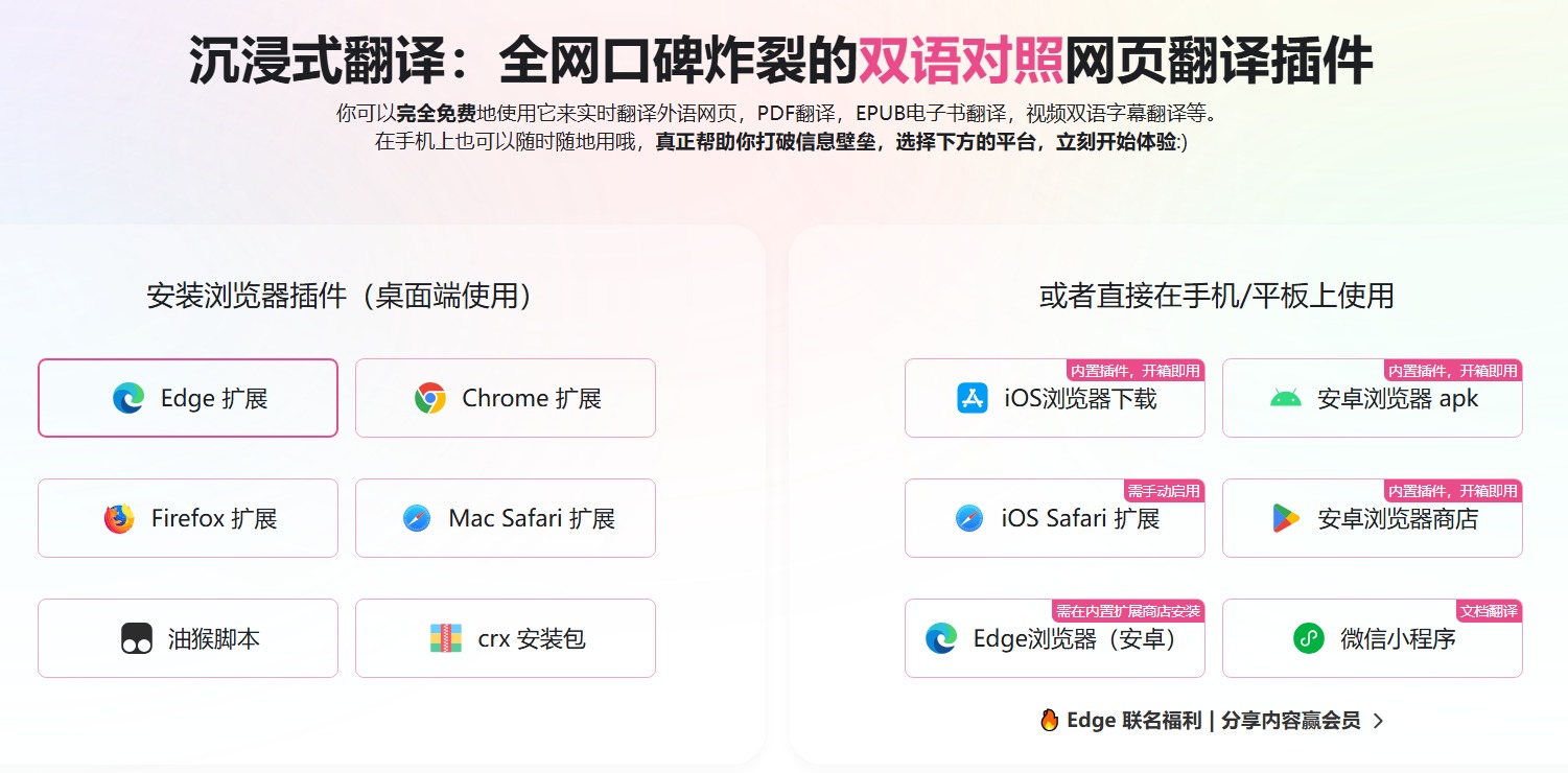 璁块棶锛岀偣鍑烩€滀笅杞解€濓紝閫夋嫨鍚堥€傜殑鐗堟湰锛屽畬鎴愭墿灞曞畨瑁呫€?/p鐐瑰嚮娴忚鍣ㄥ伐鍏锋爮涓婄殑 Immersive Translate 鍥炬爣锛屾垨鑰呯偣鍑婚〉闈㈠彸渚х殑鎮诞蹇嵎鍥炬爣锛岃繘鍏ユ彃浠堕潰鏉匡紝閫変腑銆愯嚜鍔ㄥ紑鍚弻璇瓧骞曘€戦€夐」銆?/p>鐐瑰嚮灞曞紑鍏ㄦ枃鎵撳紑APP锛岄槄璇讳綋楠屾洿浣?/span>